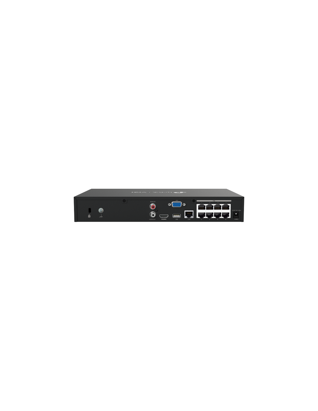 - Entrées vidéo : 8 canaux IP ; décodage total 16 MP ; enregistrement jusqu’à 8 MP par canal.