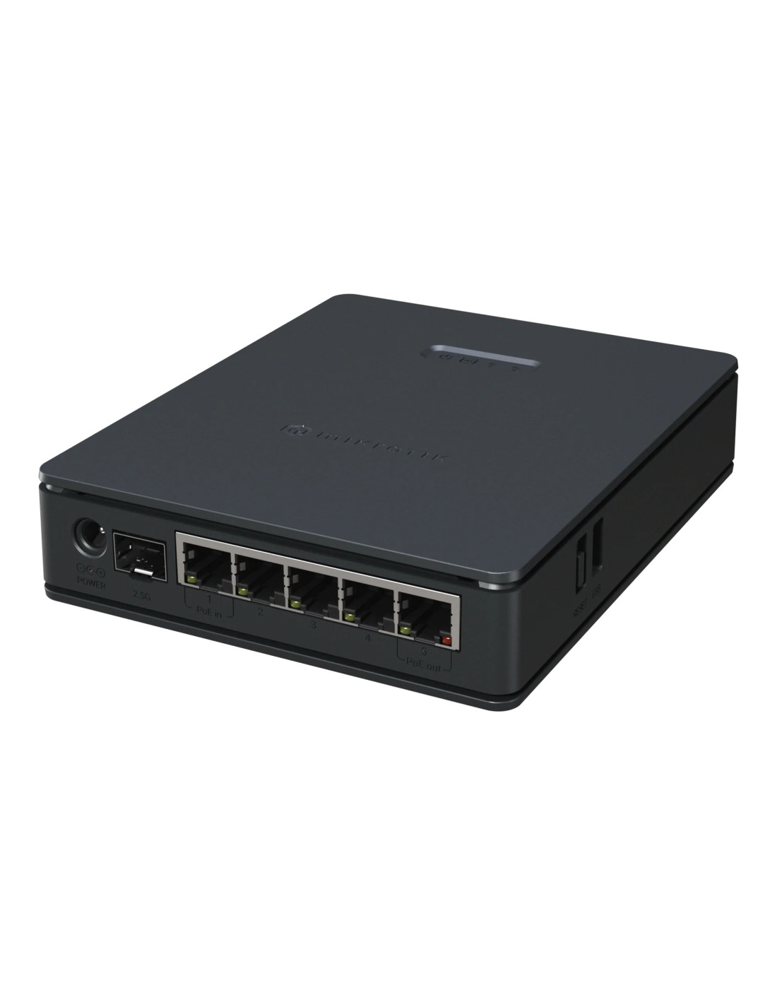 - PoE-in (18-28 V) et PoE-out passif sur Ether5 (0.6 A max)